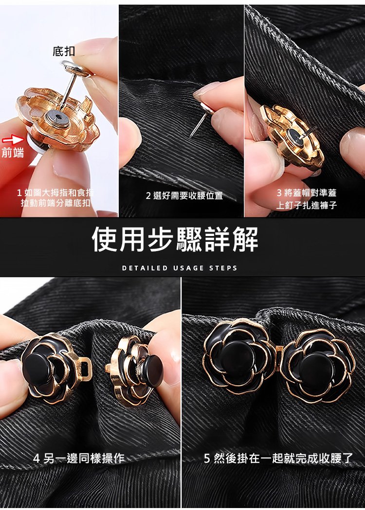 5分鐘前山茶花玫瑰瓣收腰扣 - 優惠價3入組799