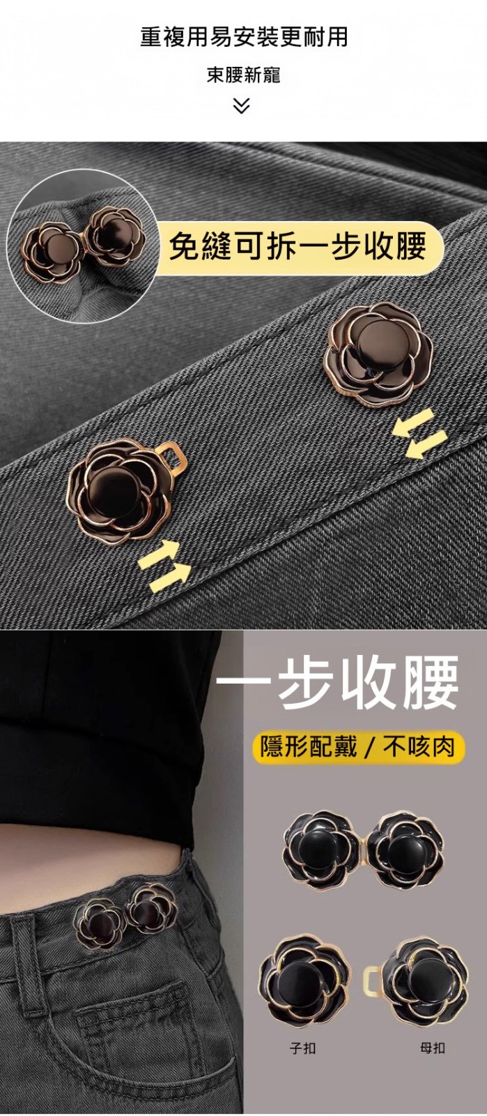 半小時前山茶花玫瑰瓣收腰扣 - 優惠價3入組799