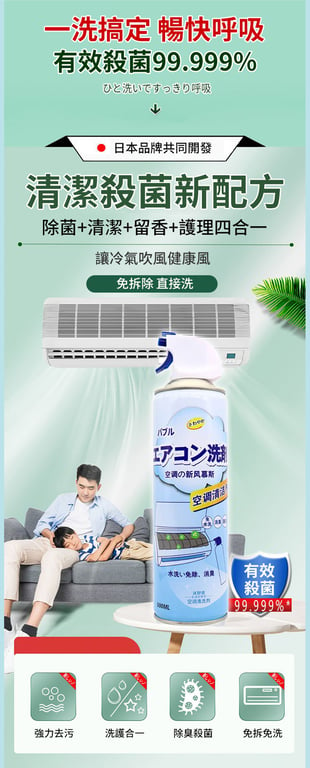 半小時前【清新夏日,從清潔開始】免拆洗空調冷氣機清潔劑深層潔淨,無需折卸空调快速分解塵垢異味 - 【買一送二】3入組-NT$998