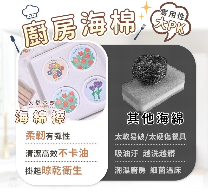 2分鐘前木漿海綿擦/碗洗得更乾淨又健康✨用過都說回不去 - 【破盤殺價:20入組】花朵木漿海綿擦NT$999