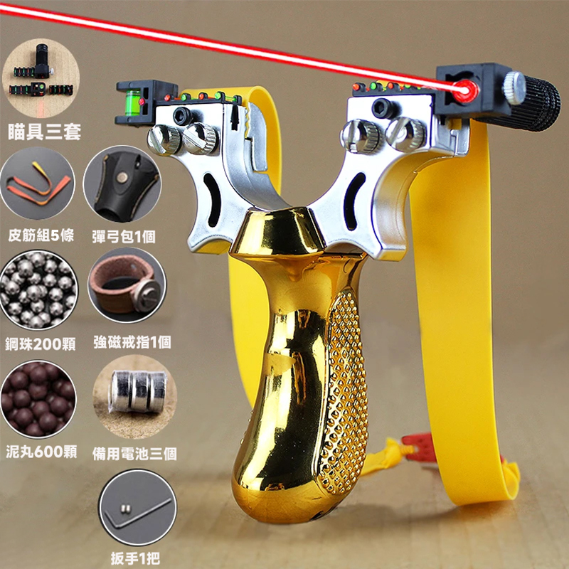 5分鐘前【百發百中彈弓】激光瞄準,水平矯正,刻度瞄準,50米內百發白中,全鋼材料,升級版,大號皮筋,庫存預警,先購先得 - 彈弓金色
